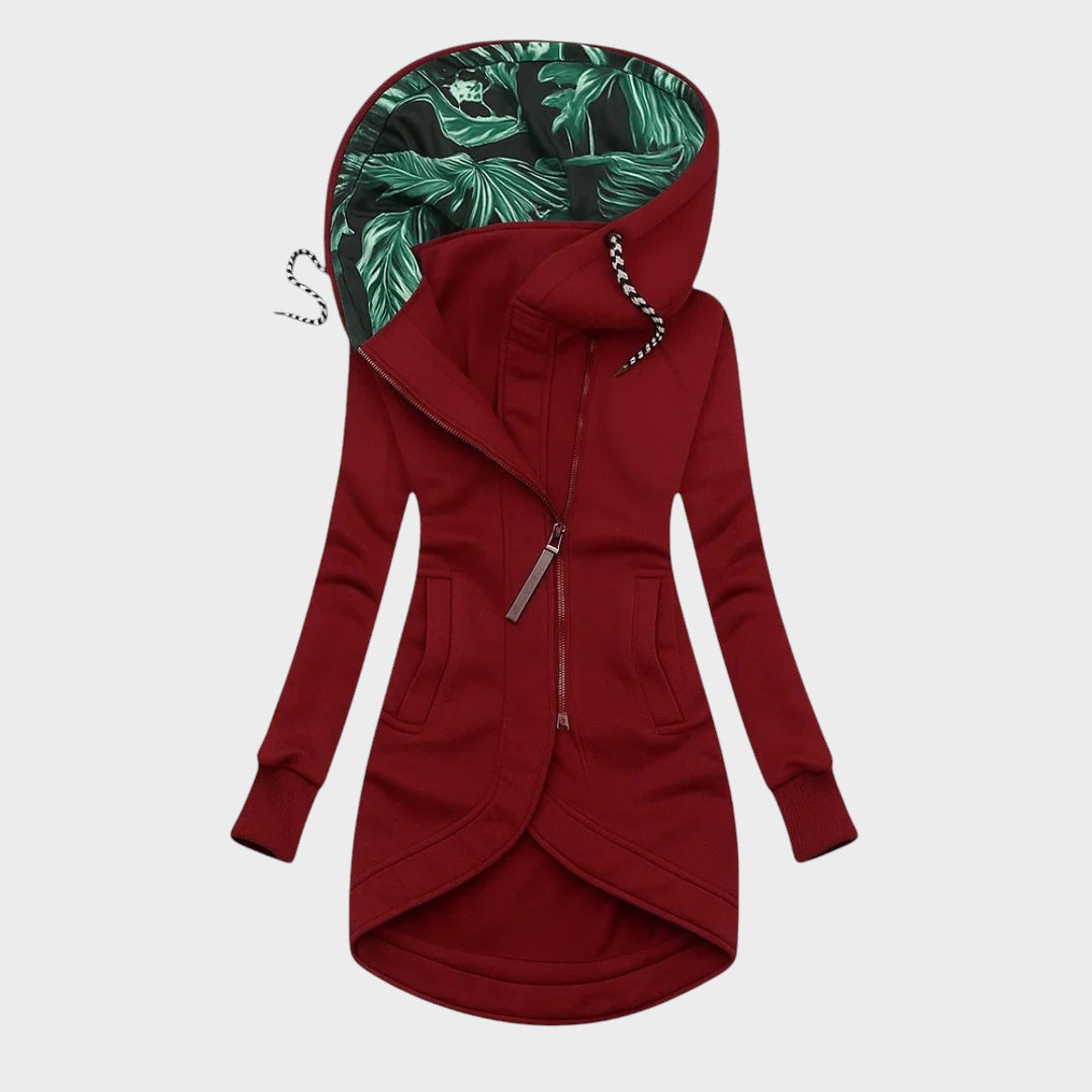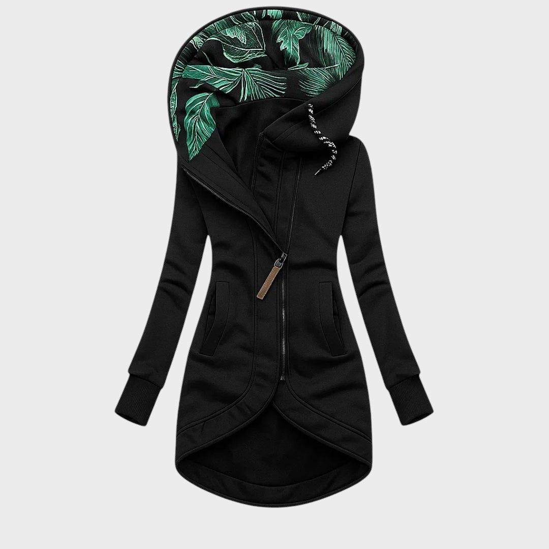 Moderný kabát s elegantnou kapucňou